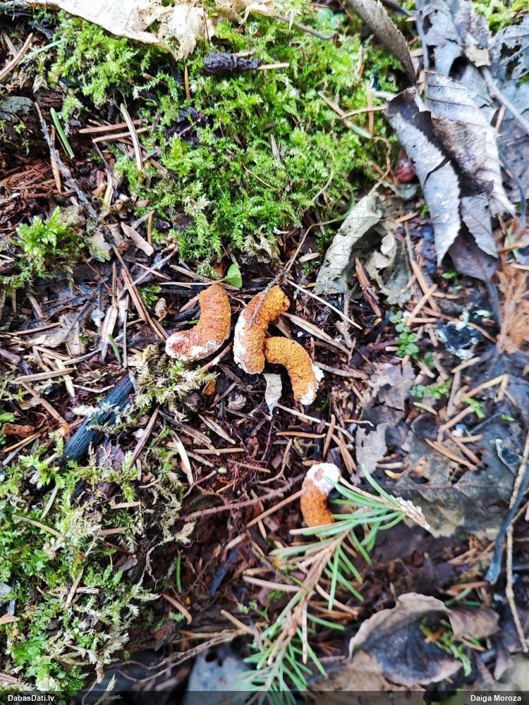 Foto diemžēl nav, bet , cik atceros, auga uz horizontāla paveca nozāģēta celma virsmas. Mežs - jauktu koku, tāda reljefaina vieta :)