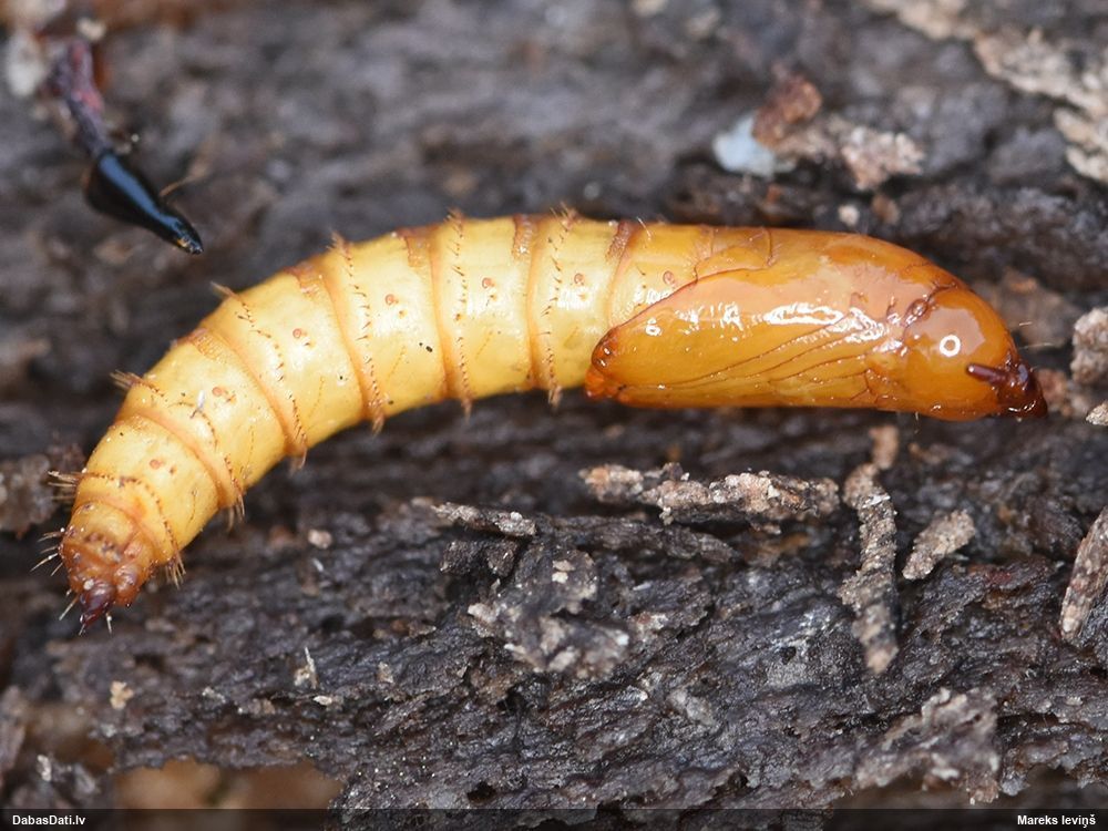 Nu jā, 3. attēlā var saskatīt galvas priekšā arī tādu kā 'āmurveida' izaugumu, kas raksturīgs Xylophagus. Kāpuri arī dzīvo zem mizas - bieži tieši zem nokaltušu priežu mizas.