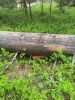Satrūdējusi kritala mežā, nav dēļi. Iespējams, egle, jauktu koku mežs.