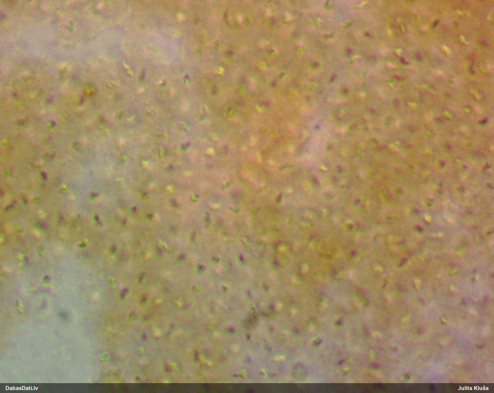 Sporas izskatās ļoti gaišas, varbūt nenobriedušas. Es laikam pēc kāda laiciņa mēģinātu vēlreiz mikroskopēt. Tajā pašā laikā sporu izmēri priekš T.contorta ir pamazi (ja tipiski ir 11-14 mkm, te ir knapi 11 mkm)