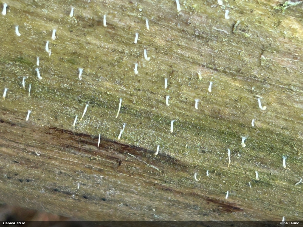 Vai tik nebūs medainā bumbulīte? Augļķermeņi vertikāli izstiepti, sporu mākonis ciešā klājienā.