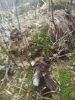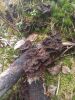 Satrūdējusi kritala mežā, nav dēļi. Iespējams, egle, jauktu koku mežs.