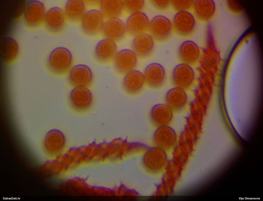 Sporas izskatās ļoti gaišas, varbūt nenobriedušas. Es laikam pēc kāda laiciņa mēģinātu vēlreiz mikroskopēt. Tajā pašā laikā sporu izmēri priekš T.contorta ir pamazi (ja tipiski ir 11-14 mkm, te ir knapi 11 mkm)