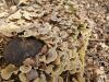 Satrūdējusi kritala mežā, nav dēļi. Iespējams, egle, jauktu koku mežs.