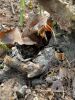 Satrūdējusi kritala mežā, nav dēļi. Iespējams, egle, jauktu koku mežs.