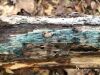 Satrūdējusi kritala mežā, nav dēļi. Iespējams, egle, jauktu koku mežs.