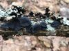 Šis interesants. Uz sausām priedes kritalām rozā mazi līdzīga izskata augļķermeņi maijā aug divām citādi atšķirīgām sugām (dažādās dzimtās) - melnajai plaispikai Amaurochaete atra un trauslajam gļotpūpēdim Reticularia jurana. Pēc sīkām mikropazīmēm (foto nav redzama pat ne sīka balta pakāje ap augļķermeni, un uz virsmas ar lielu piepūli var ja ne saskatīt, tad iztēloties tīklotu virsmas rakstu) izšķīros par biežāko no abām - melno plaispiku, kas tipiski aug samērā atklātās, skrajās vietās, t.sk. nesenos izcirtumos.