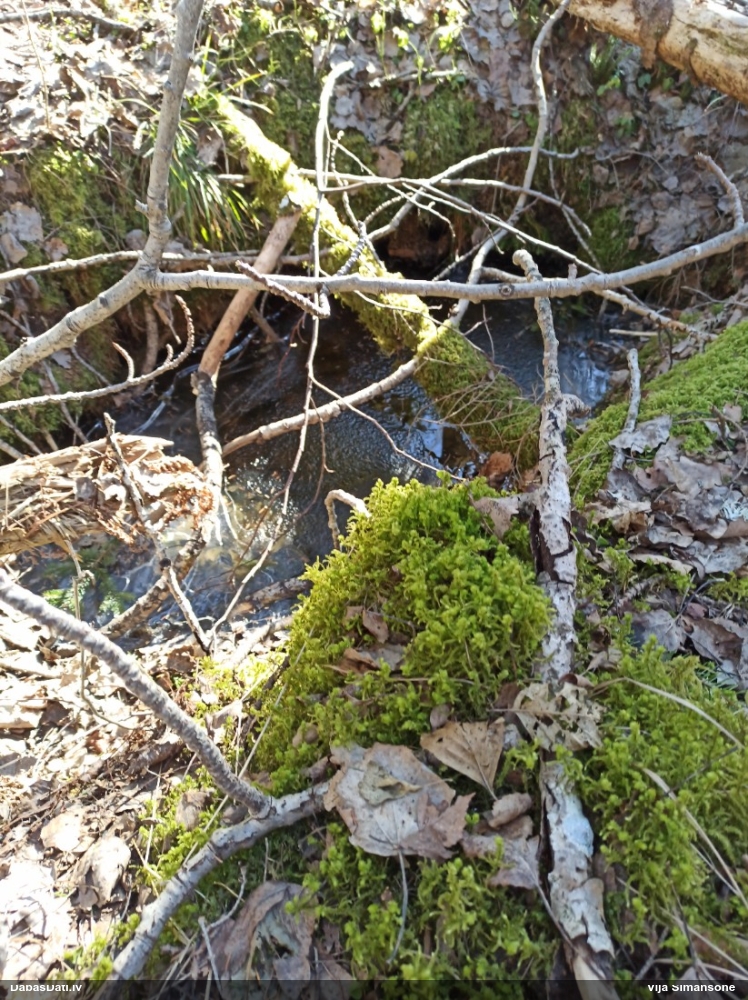Mežiņā pie mājām, kļavā ieurbtā caurumā (sulām).