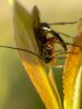 Jāredz tuvāk (kaut vai izkadrēts šis pats attēls) - varbūt tumšā eļļasvabole (Meloe proscarabaeus)