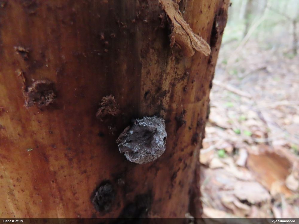 Domāju to Sorocybe resinae, ja tā, tad esmu soli tuvāk mērķim, nu zinu, kā izskatās un kur meklēt. Gļotsēnītes klāt gan nebija.