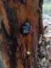 Šis interesants. Uz sausām priedes kritalām rozā mazi līdzīga izskata augļķermeņi maijā aug divām citādi atšķirīgām sugām (dažādās dzimtās) - melnajai plaispikai Amaurochaete atra un trauslajam gļotpūpēdim Reticularia jurana. Pēc sīkām mikropazīmēm (foto nav redzama pat ne sīka balta pakāje ap augļķermeni, un uz virsmas ar lielu piepūli var ja ne saskatīt, tad iztēloties tīklotu virsmas rakstu) izšķīros par biežāko no abām - melno plaispiku, kas tipiski aug samērā atklātās, skrajās vietās, t.sk. nesenos izcirtumos.