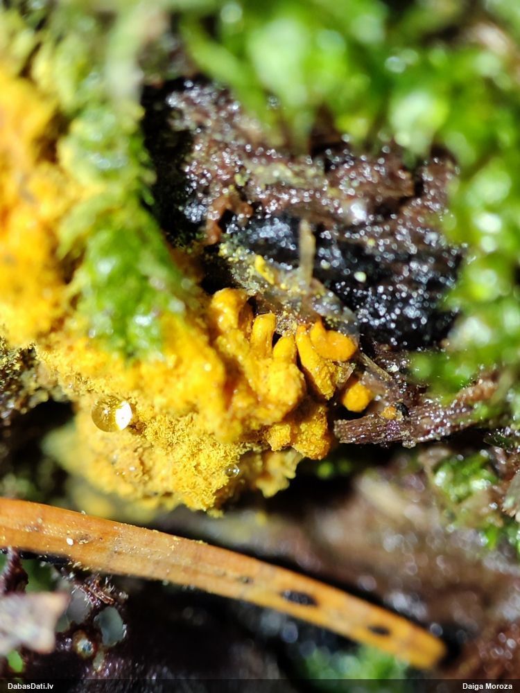 Julitas, šai paņemts paraugs, diezgan izsporojies. Un tai otrai līdzīgajai, kam ieziņots novērojums, arī. Pārliecinājos, ka tiešām egles kritalas. Bet tādu gļotsēņu diezgan daudz, vai uz katras egles kritalas, daudzās vietās stumbram, tagad dzeltenos sporu mākoņus labi redz.