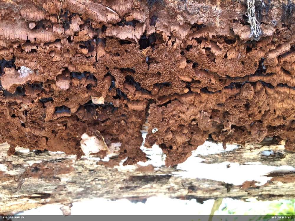 Šūnaine, jo uz virsmas tādas kā šūniņas. Uz kā auga? Izskatās pēc dēļiem.. Vajadzētu būt egles kritalai