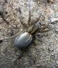 Jāredz tuvāk (kaut vai izkadrēts šis pats attēls) - varbūt tumšā eļļasvabole (Meloe proscarabaeus)