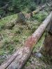 Satrūdējusi kritala mežā, nav dēļi. Iespējams, egle, jauktu koku mežs.