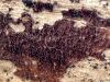 Šobrīd varu iedomāties 2 variantus - melnā plaispika Amaurochaete atra vai parastais gļotpūpēdis Reticularia lycoperdon. Pēc izmēra, augšanas laika un augšanas uz apstrādāta koka atbilst abas.
