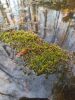 Man pēkšņi radās ideja - vai tur bija nu ļoti mitrs mikroklimats, egle ar melnalksni? Hipotētiski tādas dzeltenas var būt Diachea muscorum. Te bilde ir mazliet līdzīga: https://fr.wikipedia.org/wiki/Fichier:Craterium_muscorum,_Trawscoed,_North_Wales,_Aug_2016_-_Flickr_-_janetgraham84.jpg