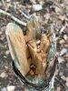 Satrūdējusi kritala mežā, nav dēļi. Iespējams, egle, jauktu koku mežs.