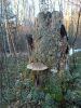 Satrūdējusi kritala mežā, nav dēļi. Iespējams, egle, jauktu koku mežs.