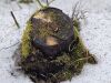 Ja uz beigta koka, tad ticamākā laikam ir B.affinis var. microspora, lai gan tā aug uz mizas. Bet varbūt tieši apakšā gļotsēnēm ir kādi mizas fragmentiņi?