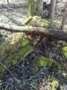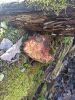 Satrūdējusi kritala mežā, nav dēļi. Iespējams, egle, jauktu koku mežs.