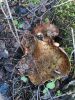 Satrūdējusi kritala mežā, nav dēļi. Iespējams, egle, jauktu koku mežs.