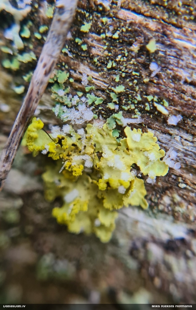 Raivo, nebūs Chaenotheca furfuracea, bet gan C.brachypoda (dabisku mežu indikatorsuga). C.furfuracea ir ar izteiktu laponi, daudz lielāki aķ un košāk zaļa krāsa