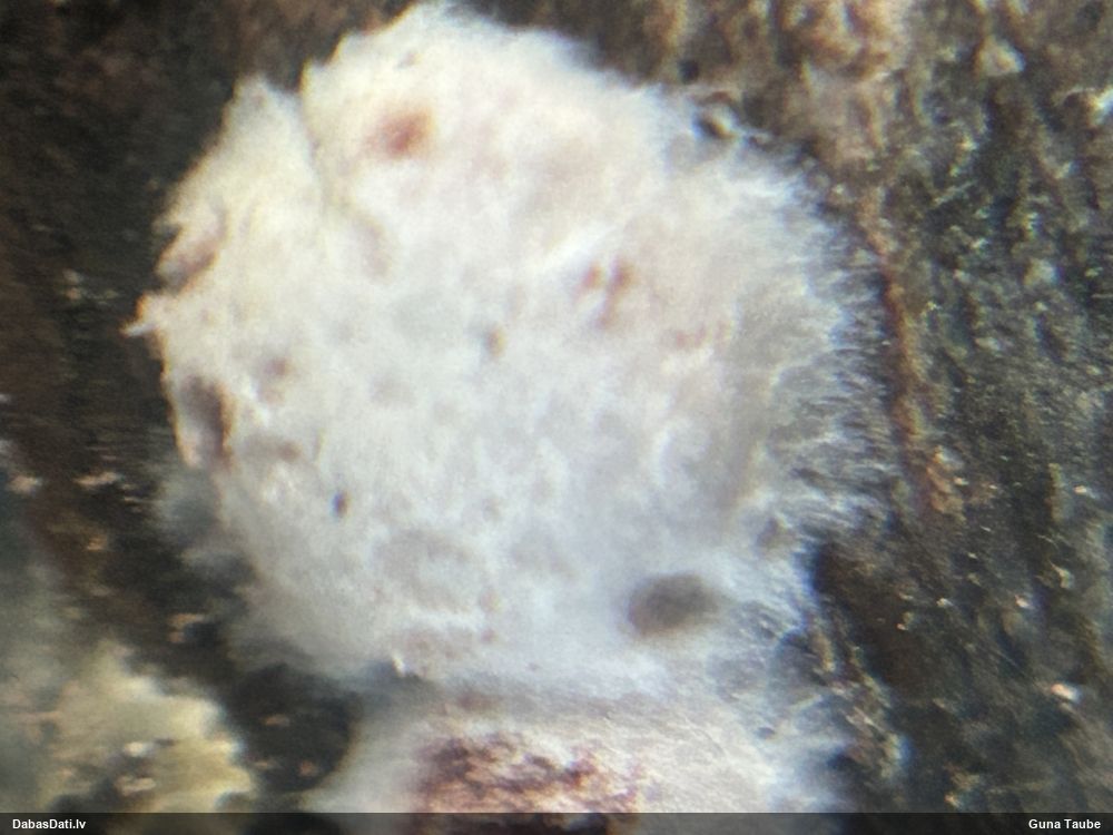 Paldies, Raivo! Ar acu gaišumu man arvien sliktāk, bet mikroskops palīdz. Jā, gribēju teikt, ka paraugam, ja vien nav kāda jutīga atradne, kurai drīkst ievākt tikai mazu gabaliņu, vērts ievākt lielāku gabalu, jo gļotsēnēm patīk kompānija. Un mikroskopa mazajos palielinājumos ar sānu papildus apgaismojumu ir vērts rūpīgi "izstaigāt" visu paraugu. Arī ķērpjus un interesantas sīksēnītes tā var atrast, ko dabā nepamanītu. Ar kriksītēm ir dažādi - pirmās es tā arī tikai citu sugu paraugos pamanīju, bet vēlāk redzēju arī dabā kriskīšu plantācijas - ja to ir daudz, tad var pamanīt jau dabā. Uz sūnām gan ir ekstrēms gadījums, dabā droši nepamanītu, arī eksemplāra noņemšana no sūnas nebija pārāk veiksmīga, tāpēc par noteikšanu mazliet šaubos (sporām mazliet cits tonis). Bet pagaidām citas hipotēzes nav (un konkrētā eksemplāra arī vairs ne).