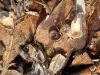 Satrūdējusi kritala mežā, nav dēļi. Iespējams, egle, jauktu koku mežs.