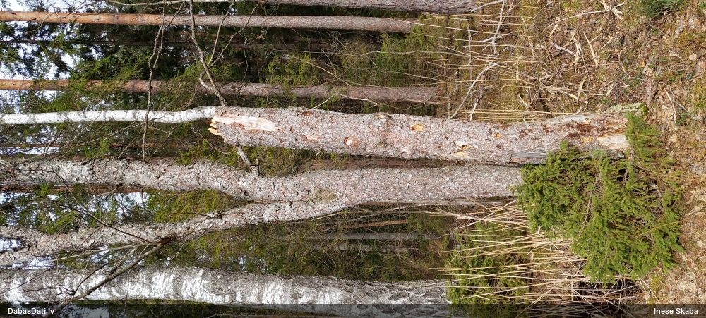 Satrūdējusi kritala mežā, nav dēļi. Iespējams, egle, jauktu koku mežs.