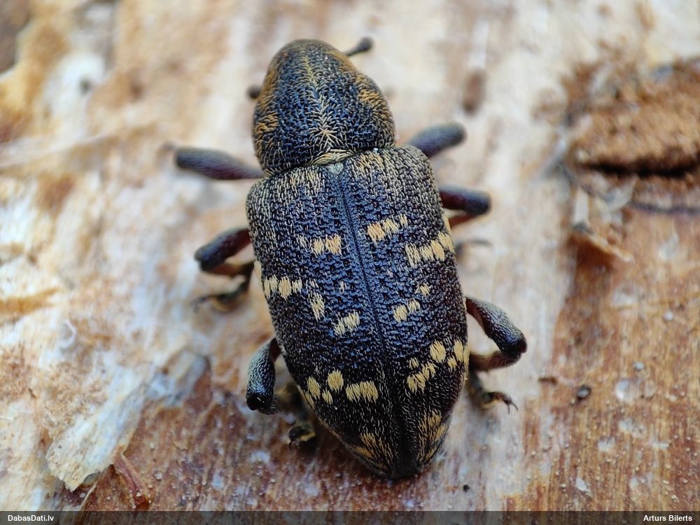 Jā, zem mizas uz nokaltušas priedes.