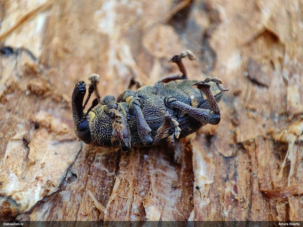 Jā, zem mizas uz nokaltušas priedes.