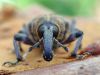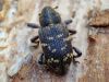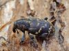 Jāredz tuvāk (kaut vai izkadrēts šis pats attēls) - varbūt tumšā eļļasvabole (Meloe proscarabaeus)