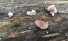 Šobrīd varu iedomāties 2 variantus - melnā plaispika Amaurochaete atra vai parastais gļotpūpēdis Reticularia lycoperdon. Pēc izmēra, augšanas laika un augšanas uz apstrādāta koka atbilst abas.