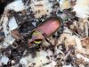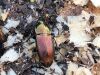 Jāredz tuvāk (kaut vai izkadrēts šis pats attēls) - varbūt tumšā eļļasvabole (Meloe proscarabaeus)