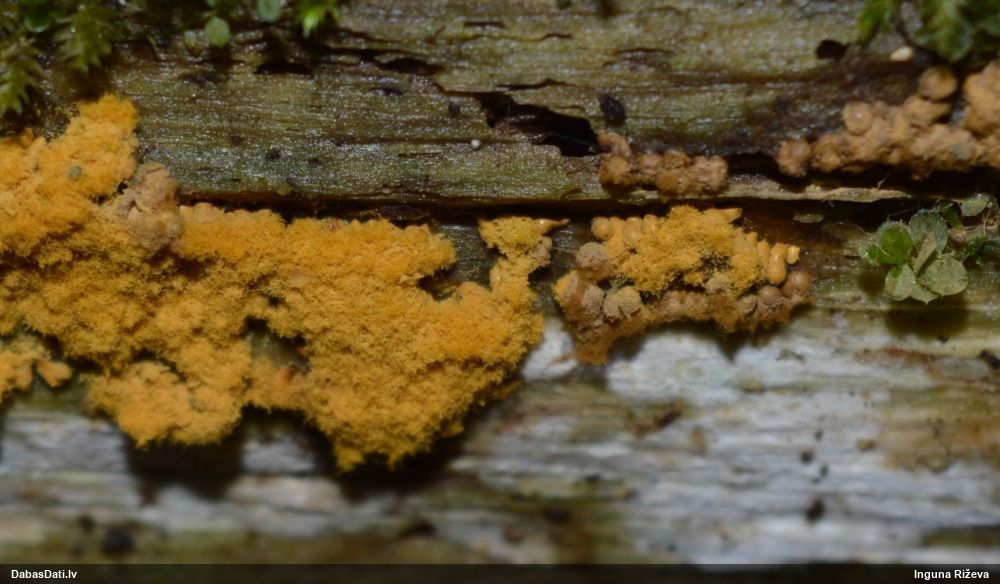 Paldies, Raivo! Ar acu gaišumu man arvien sliktāk, bet mikroskops palīdz. Jā, gribēju teikt, ka paraugam, ja vien nav kāda jutīga atradne, kurai drīkst ievākt tikai mazu gabaliņu, vērts ievākt lielāku gabalu, jo gļotsēnēm patīk kompānija. Un mikroskopa mazajos palielinājumos ar sānu papildus apgaismojumu ir vērts rūpīgi "izstaigāt" visu paraugu. Arī ķērpjus un interesantas sīksēnītes tā var atrast, ko dabā nepamanītu. Ar kriksītēm ir dažādi - pirmās es tā arī tikai citu sugu paraugos pamanīju, bet vēlāk redzēju arī dabā kriskīšu plantācijas - ja to ir daudz, tad var pamanīt jau dabā. Uz sūnām gan ir ekstrēms gadījums, dabā droši nepamanītu, arī eksemplāra noņemšana no sūnas nebija pārāk veiksmīga, tāpēc par noteikšanu mazliet šaubos (sporām mazliet cits tonis). Bet pagaidām citas hipotēzes nav (un konkrētā eksemplāra arī vairs ne).