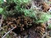 Man pēkšņi radās ideja - vai tur bija nu ļoti mitrs mikroklimats, egle ar melnalksni? Hipotētiski tādas dzeltenas var būt Diachea muscorum. Te bilde ir mazliet līdzīga: https://fr.wikipedia.org/wiki/Fichier:Craterium_muscorum,_Trawscoed,_North_Wales,_Aug_2016_-_Flickr_-_janetgraham84.jpg