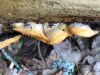 Man pēkšņi radās ideja - vai tur bija nu ļoti mitrs mikroklimats, egle ar melnalksni? Hipotētiski tādas dzeltenas var būt Diachea muscorum. Te bilde ir mazliet līdzīga: https://fr.wikipedia.org/wiki/Fichier:Craterium_muscorum,_Trawscoed,_North_Wales,_Aug_2016_-_Flickr_-_janetgraham84.jpg