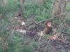 Satrūdējusi kritala mežā, nav dēļi. Iespējams, egle, jauktu koku mežs.