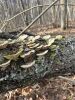 Satrūdējusi kritala mežā, nav dēļi. Iespējams, egle, jauktu koku mežs.
