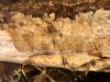 Satrūdējusi kritala mežā, nav dēļi. Iespējams, egle, jauktu koku mežs.