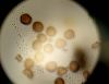 Paldies, Raivo! Ar acu gaišumu man arvien sliktāk, bet mikroskops palīdz. Jā, gribēju teikt, ka paraugam, ja vien nav kāda jutīga atradne, kurai drīkst ievākt tikai mazu gabaliņu, vērts ievākt lielāku gabalu, jo gļotsēnēm patīk kompānija. Un mikroskopa mazajos palielinājumos ar sānu papildus apgaismojumu ir vērts rūpīgi "izstaigāt" visu paraugu. Arī ķērpjus un interesantas sīksēnītes tā var atrast, ko dabā nepamanītu. Ar kriksītēm ir dažādi - pirmās es tā arī tikai citu sugu paraugos pamanīju, bet vēlāk redzēju arī dabā kriskīšu plantācijas - ja to ir daudz, tad var pamanīt jau dabā. Uz sūnām gan ir ekstrēms gadījums, dabā droši nepamanītu, arī eksemplāra noņemšana no sūnas nebija pārāk veiksmīga, tāpēc par noteikšanu mazliet šaubos (sporām mazliet cits tonis). Bet pagaidām citas hipotēzes nav (un konkrētā eksemplāra arī vairs ne).