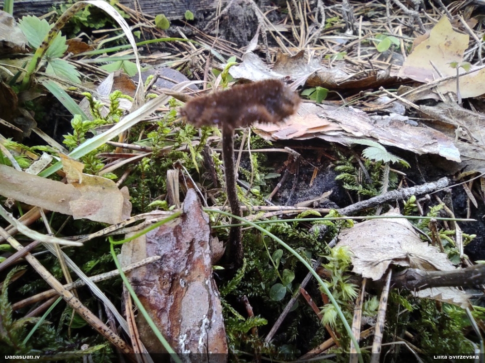 Teiktu, ka medainā bumbulīte. Redz vertikāli izstieptus augļķermeņus (ne pilienveida).