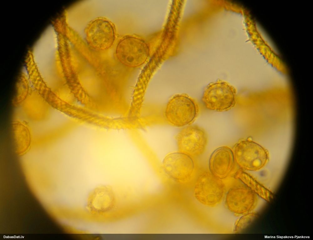 Šis man pašai sanāca pārsteigums. Ievācu paraugu ar domu "varbūt tur ir gļotsēne", dodot varbūtību apmēram pusprocentu, ka ir. Bet no mikroskopijas starp galīgi vecām sporām izdevās atrast ne tikai dažas labas, bet, galvenais, arī perfektus kapilīcija fragmentus, no kura suga, vēl kopā ar sporu pazīmēm, nosakāma nešaubīgi.