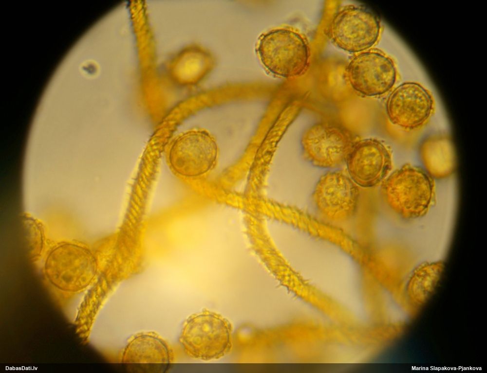 Šis man pašai sanāca pārsteigums. Ievācu paraugu ar domu "varbūt tur ir gļotsēne", dodot varbūtību apmēram pusprocentu, ka ir. Bet no mikroskopijas starp galīgi vecām sporām izdevās atrast ne tikai dažas labas, bet, galvenais, arī perfektus kapilīcija fragmentus, no kura suga, vēl kopā ar sporu pazīmēm, nosakāma nešaubīgi.