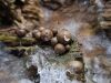 Nezinu, kāpēc šis nav izskatīts kā pēcsniedzīte. 24. marts pavasarī, kad bija daudz sniega. Pēc sporām varētu atbilst divas sugas - Physarum alpinum un Physarum albescens. Abām minētas 2 perīdija kārtas, bet redzu tikai vienu plānu, dzeltenu. Šīm sugām maz foto, bet esošajos arī tās divas kārtas nav uzskatāmi. Kopskats mēdz būt tik dažāds, ka grūti pateikt, cik šis atbilst.