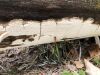 Satrūdējusi kritala mežā, nav dēļi. Iespējams, egle, jauktu koku mežs.