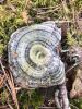 Satrūdējusi kritala mežā, nav dēļi. Iespējams, egle, jauktu koku mežs.