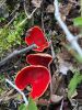 Man pēkšņi radās ideja - vai tur bija nu ļoti mitrs mikroklimats, egle ar melnalksni? Hipotētiski tādas dzeltenas var būt Diachea muscorum. Te bilde ir mazliet līdzīga: https://fr.wikipedia.org/wiki/Fichier:Craterium_muscorum,_Trawscoed,_North_Wales,_Aug_2016_-_Flickr_-_janetgraham84.jpg