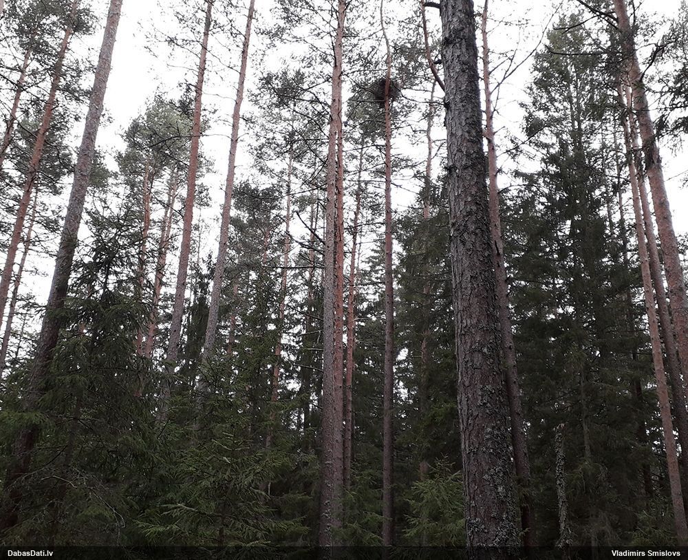 Man liekas, ka bija jaukts priežu/egļu mežs, bet pamitrs, jo laukumiem bija sfagni. Apskatīšos, vai ir saglabājušies foto.